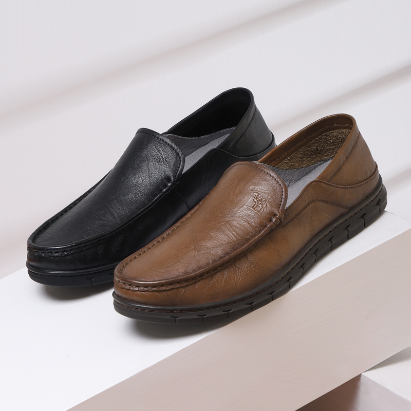 Camel men's shoes 2023 springtime genuine leather male soft bottom comfortable soft-bottom dad middle-aged business casual leather legue-bean shoes-Taobao
