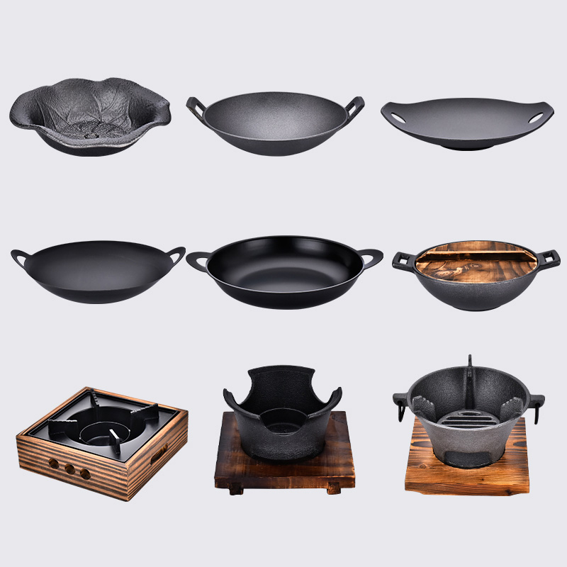 Commercial cast iron double ear dry pot thickened without pan-paparazzi charcoal stove roast carbon burning carbon stove Pig Iron Day Style Alcohol Stove Base