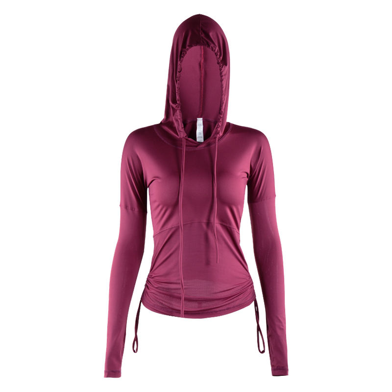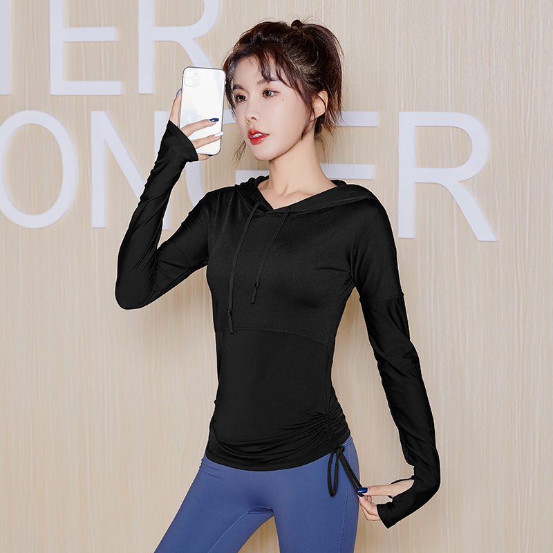 Long sleeve yoga suit Spring and summer new running outdoor exercise hood sports topper female breathable speed dry fitness T-shirt