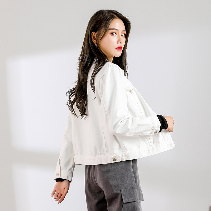White Denim Jacket Woman Loose short 2022 Spring autumn new 100 hitch Aroma Port Taste Casual Blouse Jacket