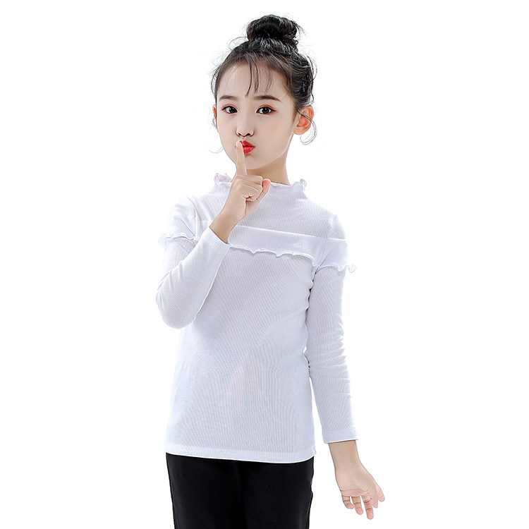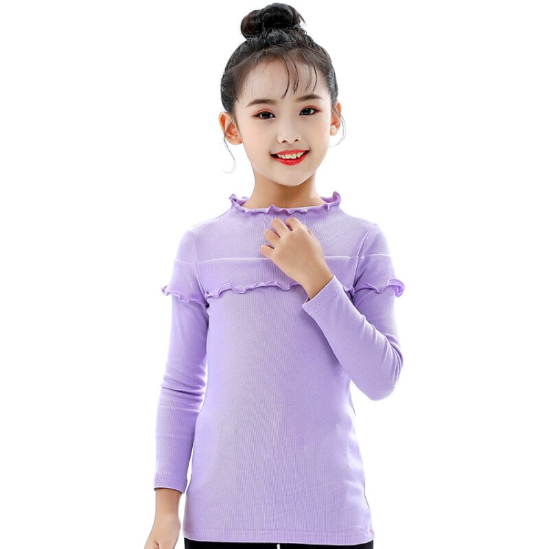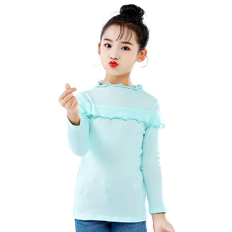 Child Clothing Girl Stitch Cardiovert 2022 Spring New Foreign Pie 100 Hitch Undershirt Long Sleeve T-Shirt Pure Color Slapped Bottom Blouse