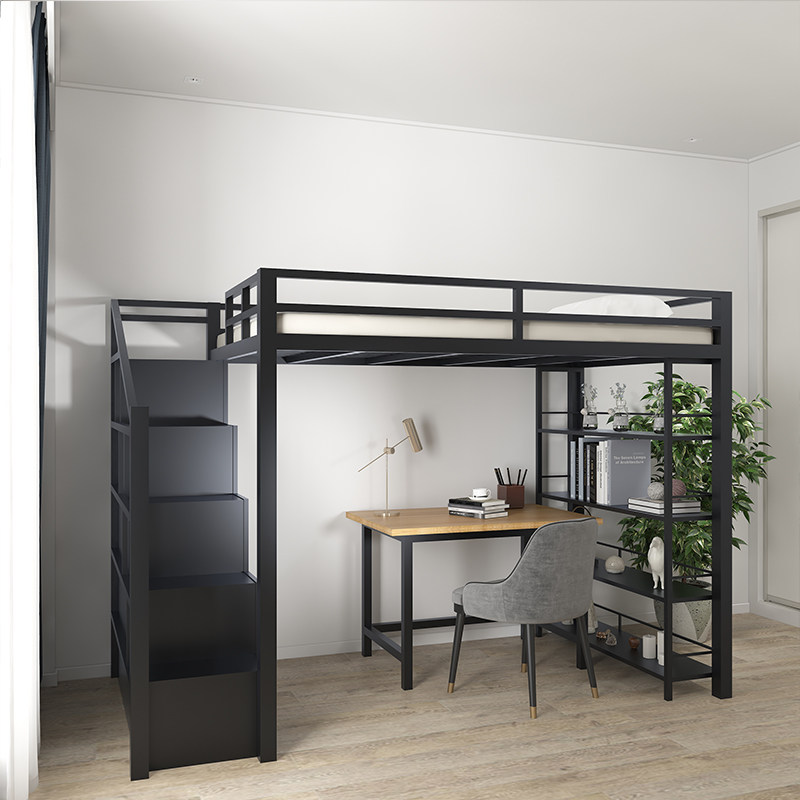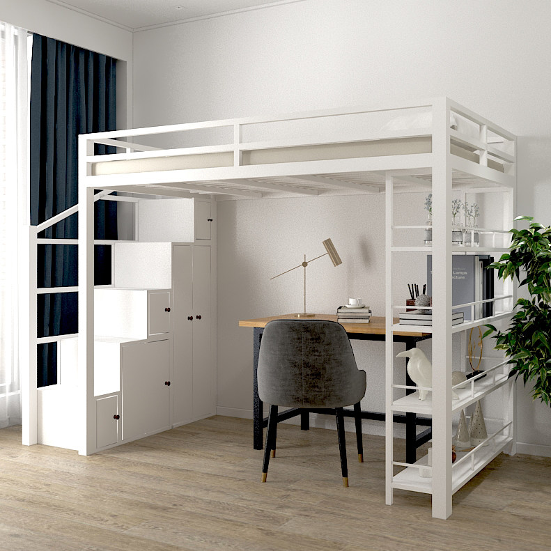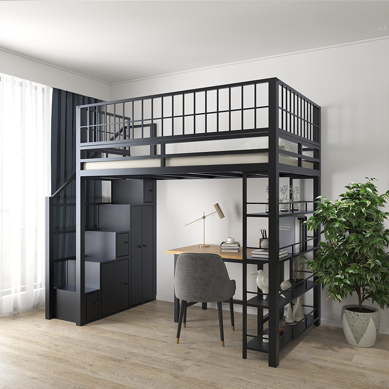 Loft mu small apartment type wrought iron elevated mute with ladder cabinet multi-functional mulch under table simple space iron cabinet single person