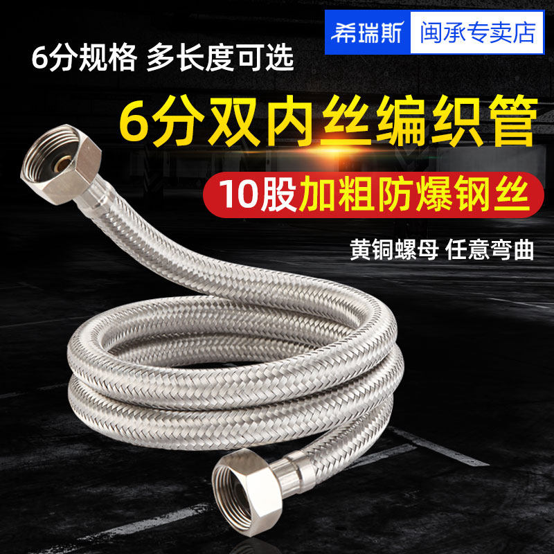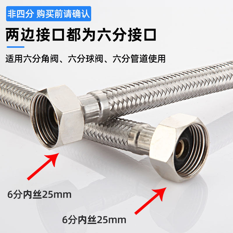 DN20 6 points inner wire hose extension tube 3 4 304 stainless steel braided cold and hot water inlet pipe high temperature explosion-proof