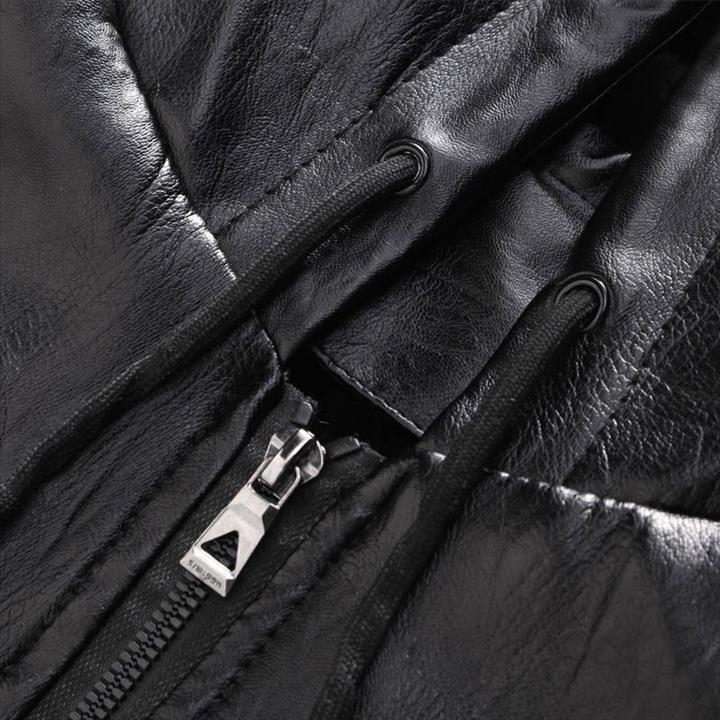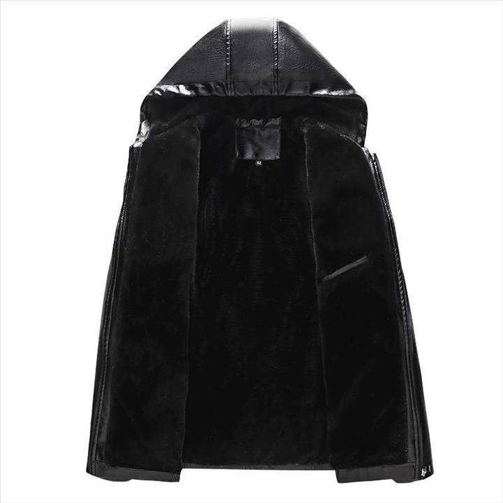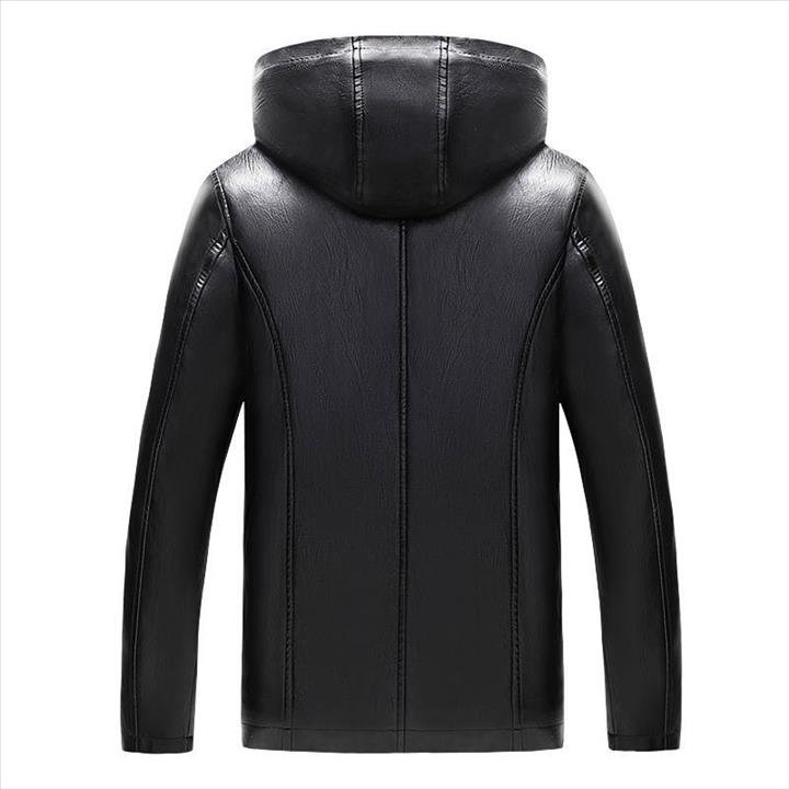 Haining Middle Age Link Link Garment Men Winter with Hat Hat Jacket Youth Locomotive Leather Clothes