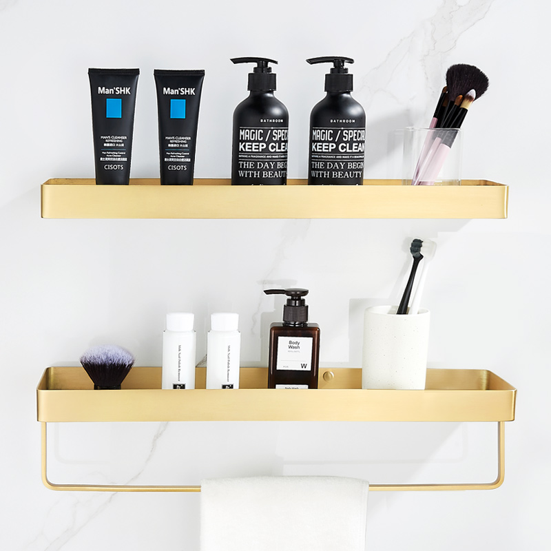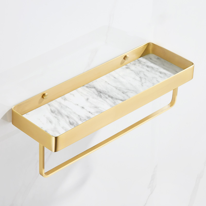 Light Luxury Copper 30cm Rectangular Shelf With Towel Bar Jazz White Marble