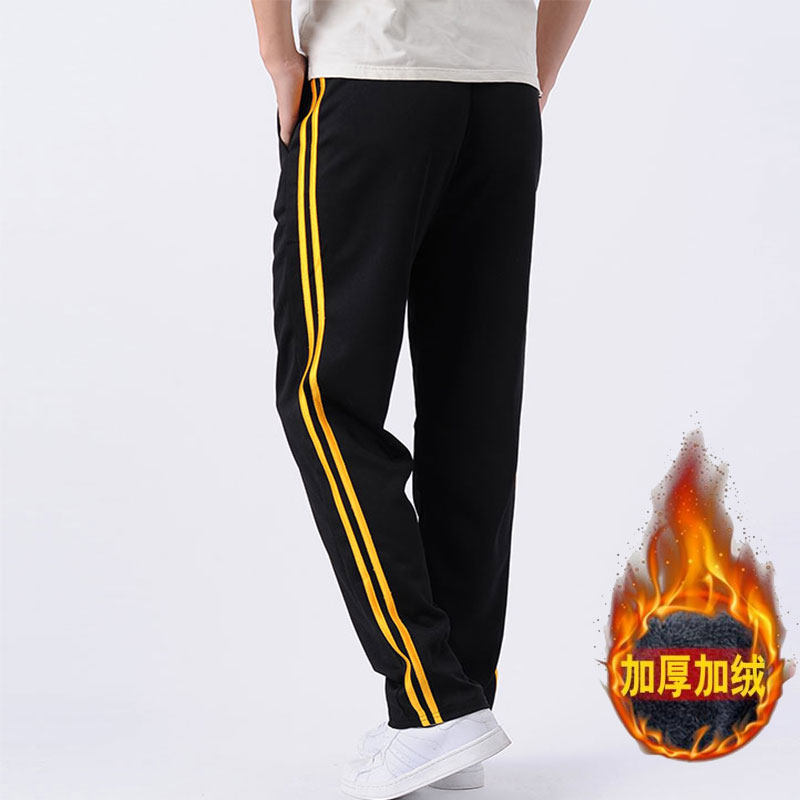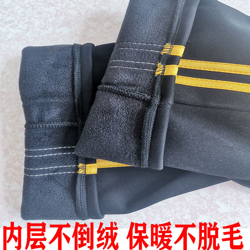 Winter Plus Thickened Students School Uniforms Pants Men And Women Two Bars Yellow Edge School Pants Elementary School Junior High School Raw Plus Cotton
