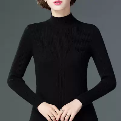 2021 autumn winter 100% pure cardigan black slim half turtleneck sweater thick knitted cashmere base shirt Women