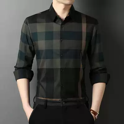 Spring and autumn 2021 recycled fiber men's long sleeve shirt men's shirt shirt top Plaid business casual inch shirt
