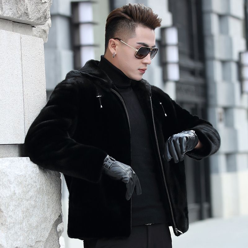 Henning Watermink Mink Fur Coat Man's short section Lianhood Whole Mink Fur Leather Leather Fur Coat Men's Leather Grass Jacket Man