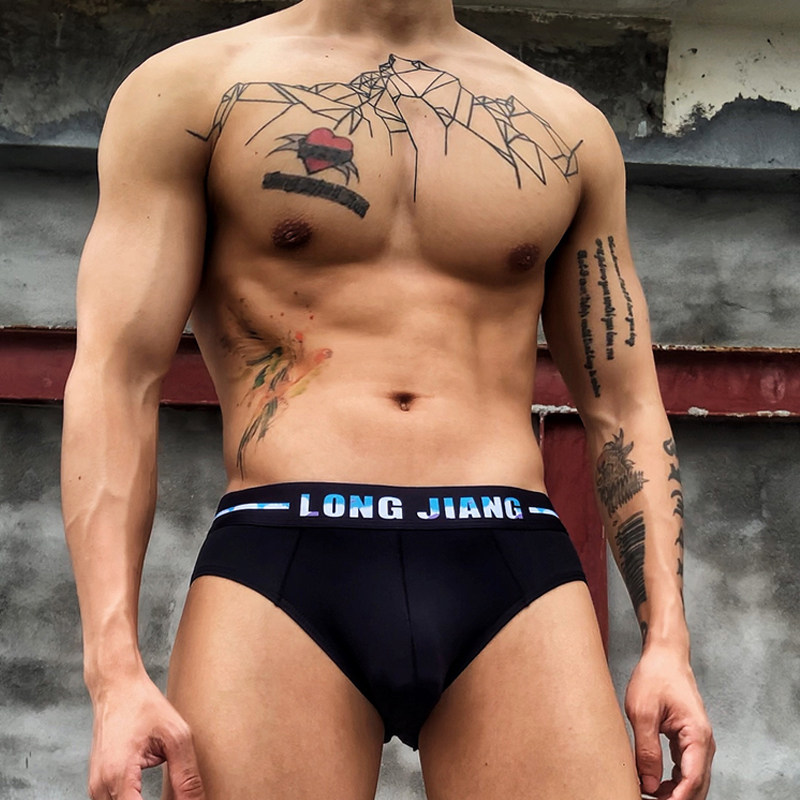 Triangle low waist sexy men ice wire ultra thin underwear speed dry color personality trend in English letter