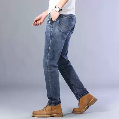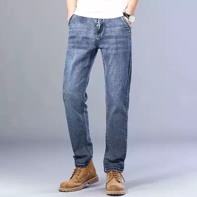 Summer thin light blue jeans men's straight loose retro washed casual trousers All-match oblique pocket pants