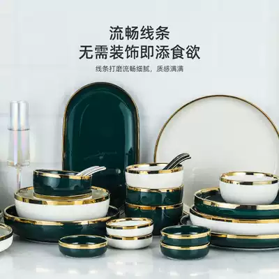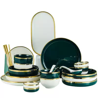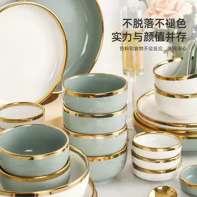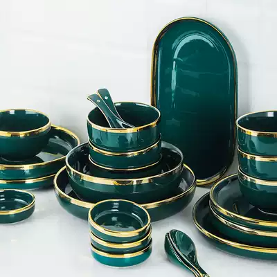 Light luxury tableware dishes set Ceramic household emerald phnom penh bowls and plates combination Nordic high-value bowls and chopsticks