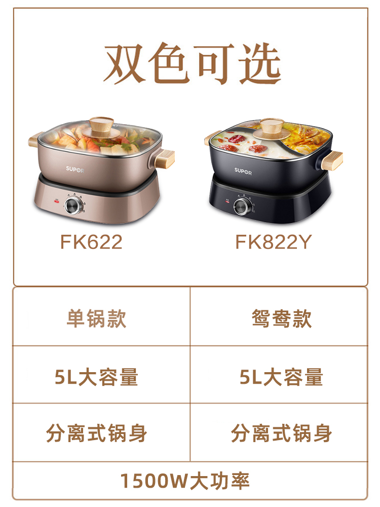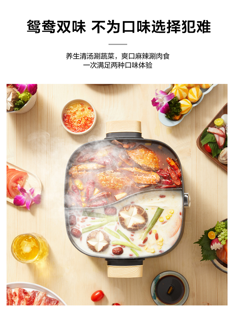 Supor electric fire hot pot mandarin duck pot household split type large capacity detachable multi-functional electric frying pan electric cooking pot