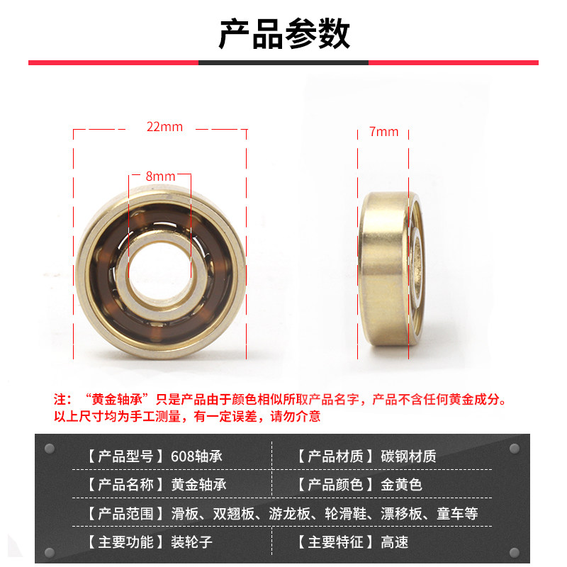 Roller skating accessories roller skates skateboard bearing high speed silent accessories baby carriage universal 608zz gold black gold bearing