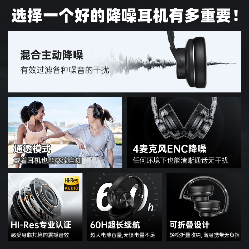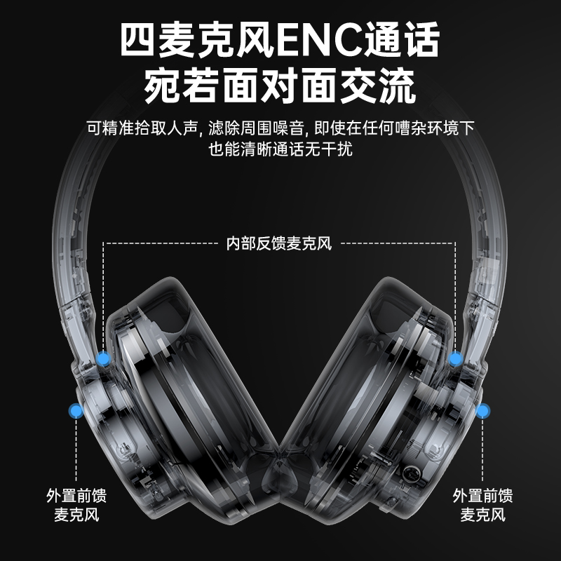 Ruthless Black (Dual Feedback Active Noise Reduction Through Mode) Starry Sky Black ANC Active Noise Reduction Super Long Battery Life 60H Original Storage Box