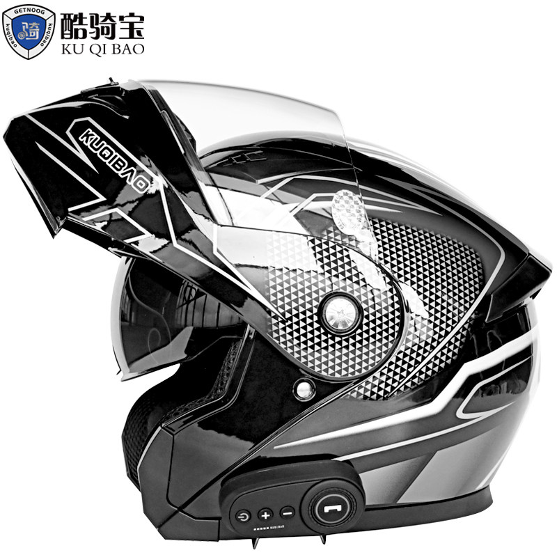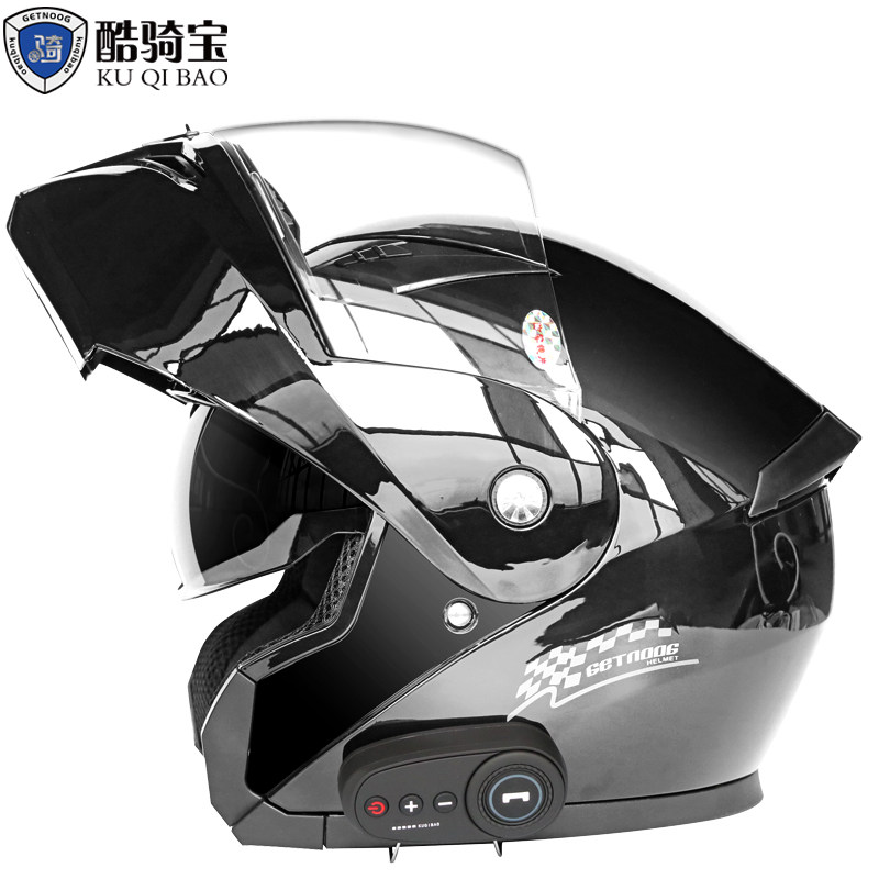 Cool riding treasure electric motorcycle exposed helmet men's and women's full helmet with Bluetooth headset built-in riding motorcycle anti-fog gray