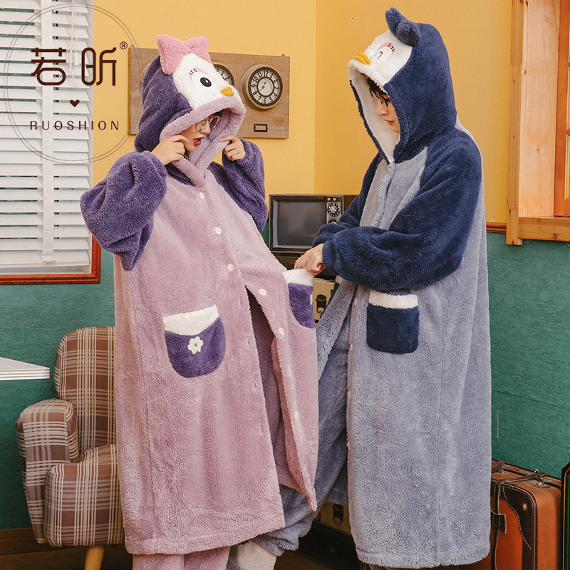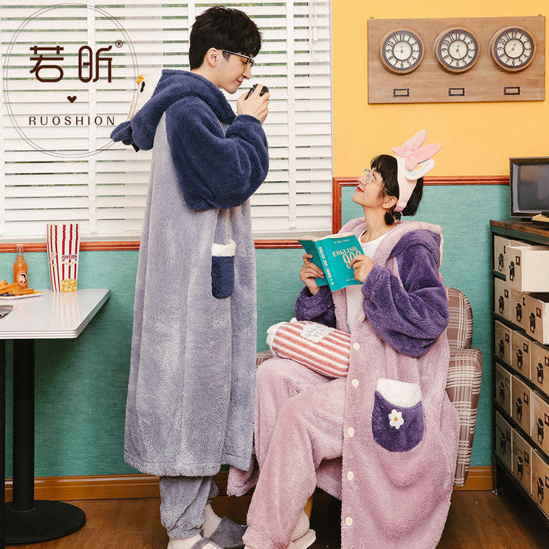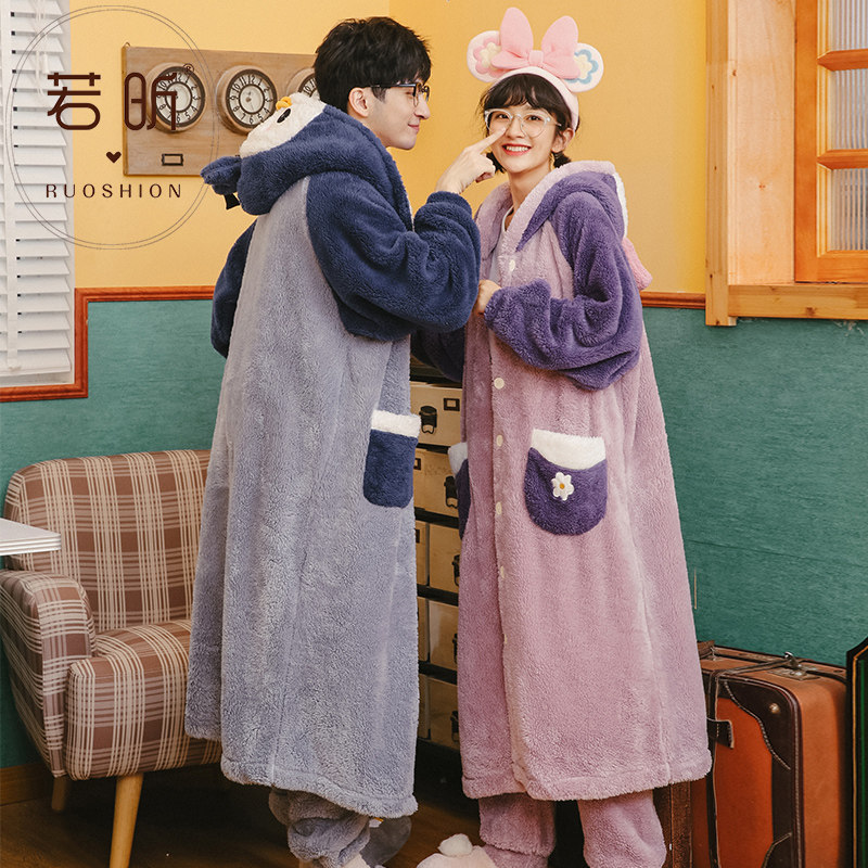 Suit lovers sleeping robes coral suede pyjamas women's spring autumn Winter style Cute Thickened Flannel Men's Home Clothing