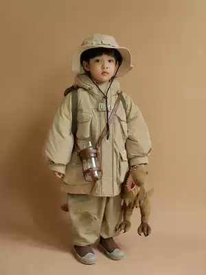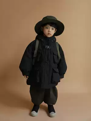 oddtails boys overalls wind cotton clothes warm winter clothes 2021 new medium and large children thick hooded cotton coat