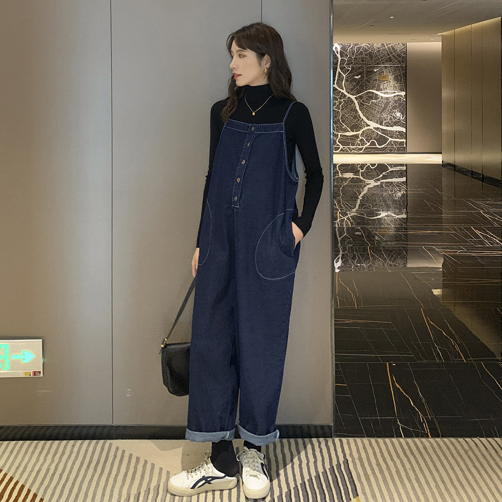 Pregnant woman with baby bag pants outside wearing spring autumn and winter suit Fashion South Korea Leisure loose Large size straight cylinder Jeans Wide Trouser Tide