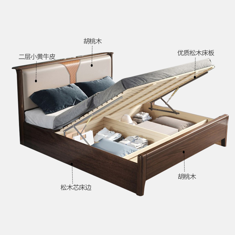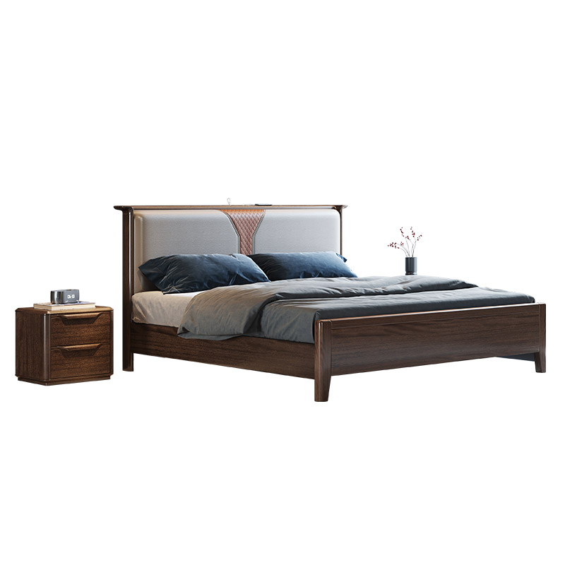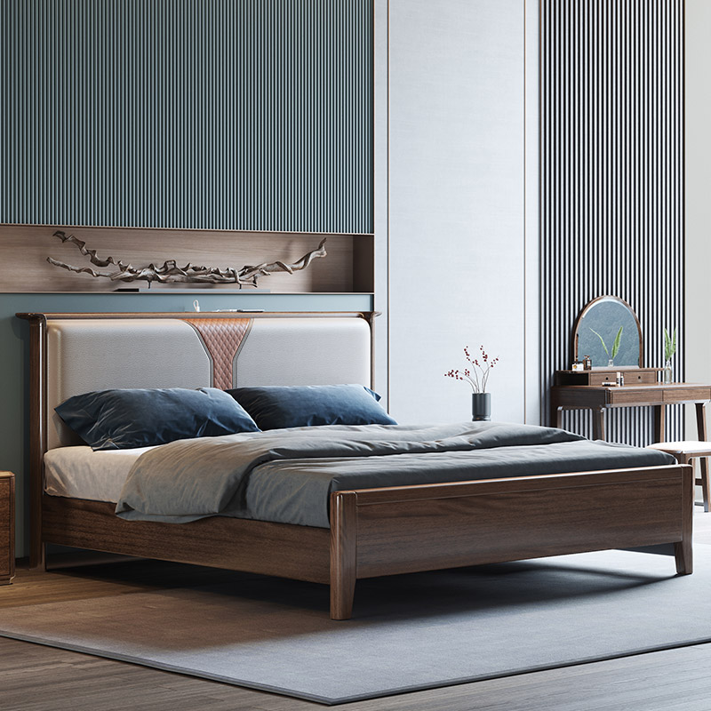 Walnut wood solid wood modern simple 18m double master bedroom Nordic light luxury soft bag high box storage large wedding