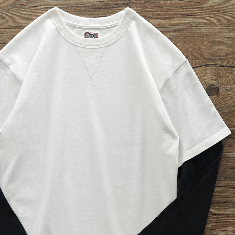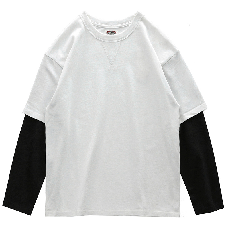 Fake two heavy lbs Long sleeves T-shirt Male loose Leisure Fall Shoulders Day Ensemble Retro Chains Crash Color Pure Cotton Outwear T-Shirt