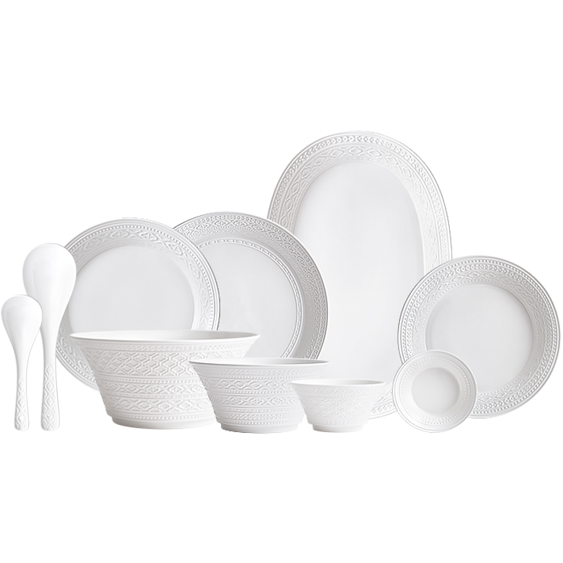 Margoront tableware ceramic relief stuff for dish dish household European-style white soup bowl spoon suit