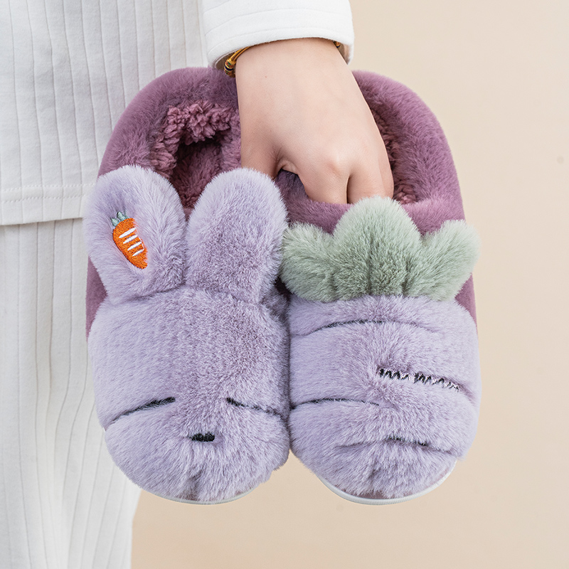 Rogue Rabbit Cotton Slippers Women's Winter Cartoon Bag Heel Winter Cute Students Warm Thick Men's Couple Fur Shoes Cotton Shoes