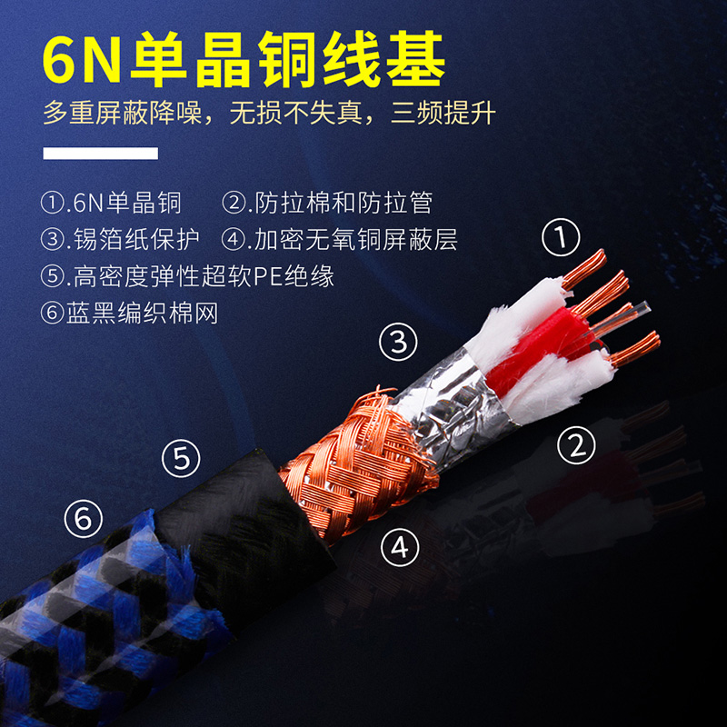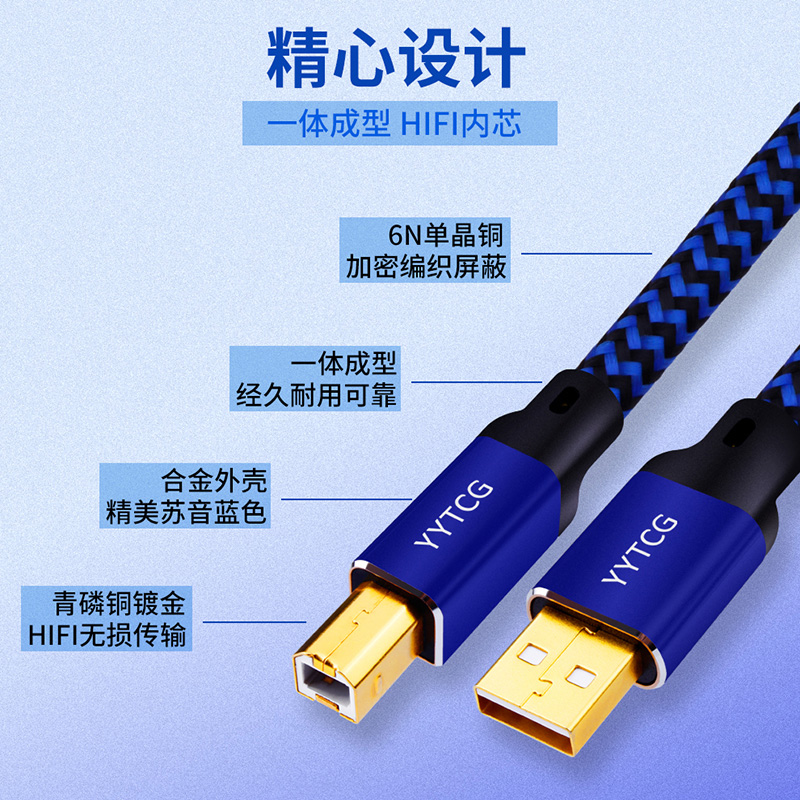 Fever grade USB audio cable A-B 6n single crystal copper DAC decoding line mixer computer connection sound card HIFI level 2 0 speaker line data line printer connection line square mouth to flat mouth