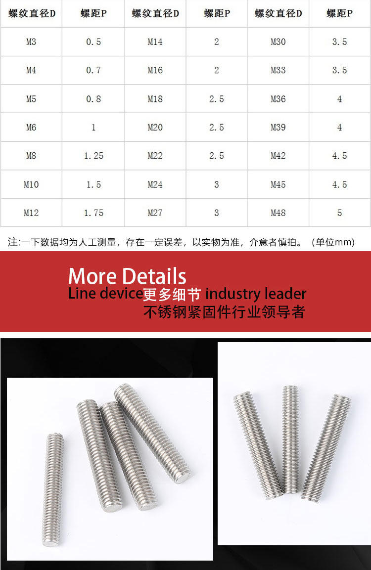 M4*1 m(304 material) M5*1 m(304 material) M6*1 m(304 material) M8*1 m(304 material) M10*1 m(304 material