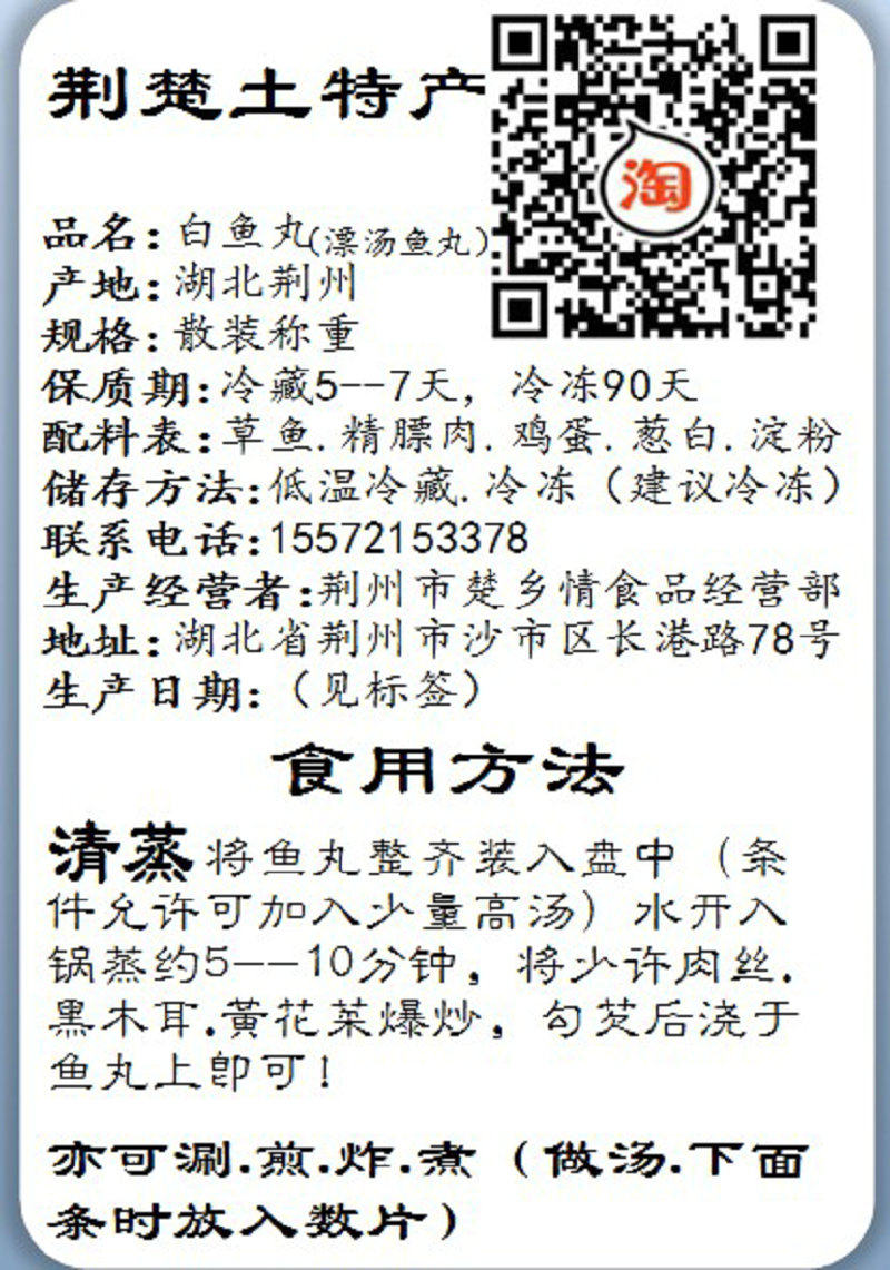 Hubei Jingzhou specialty handmade grass carp ball carp floating soup ball fish cake with ingredients added to the ice