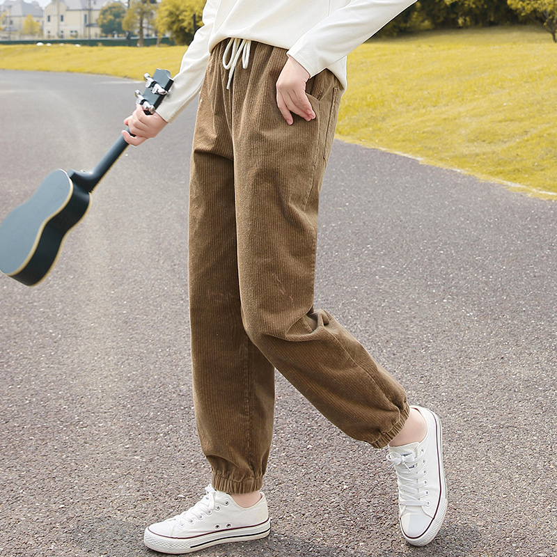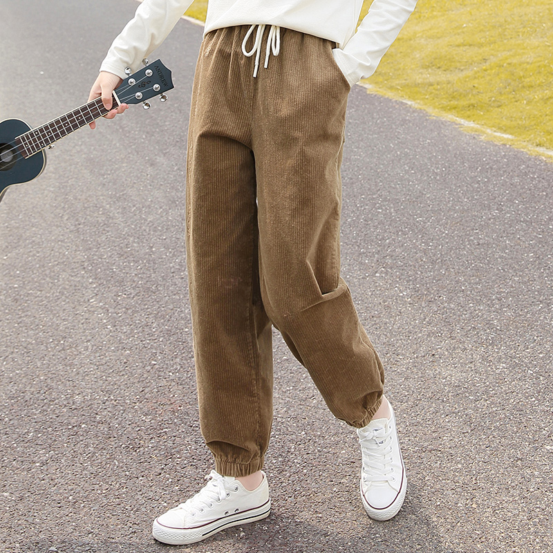 2020 New Girls Big Boys High Waist Casual Pants Female High School Junior High School Students Girls Corduroy Autumn and Winter Pants