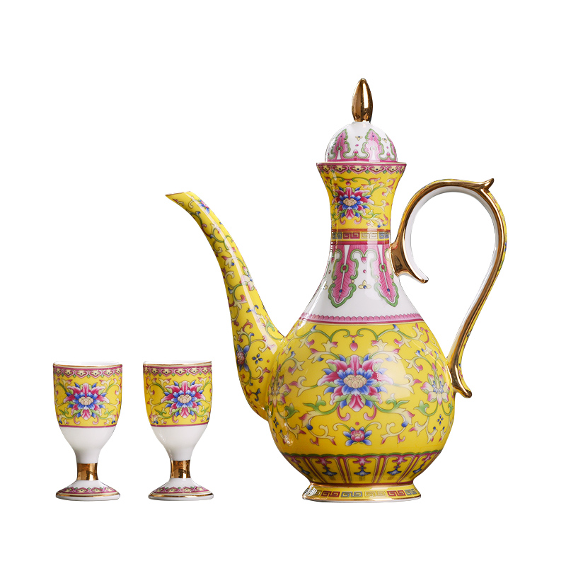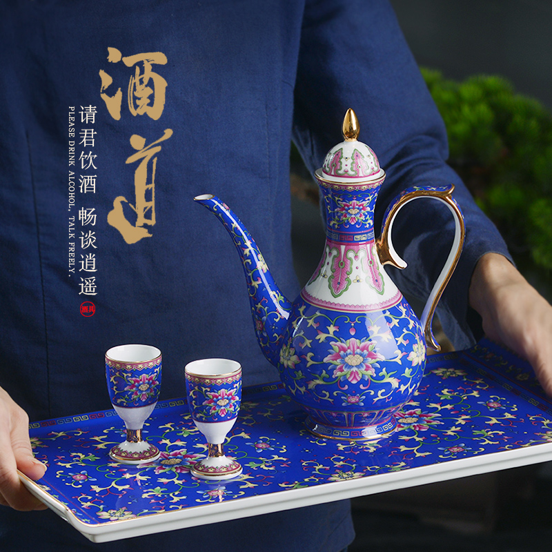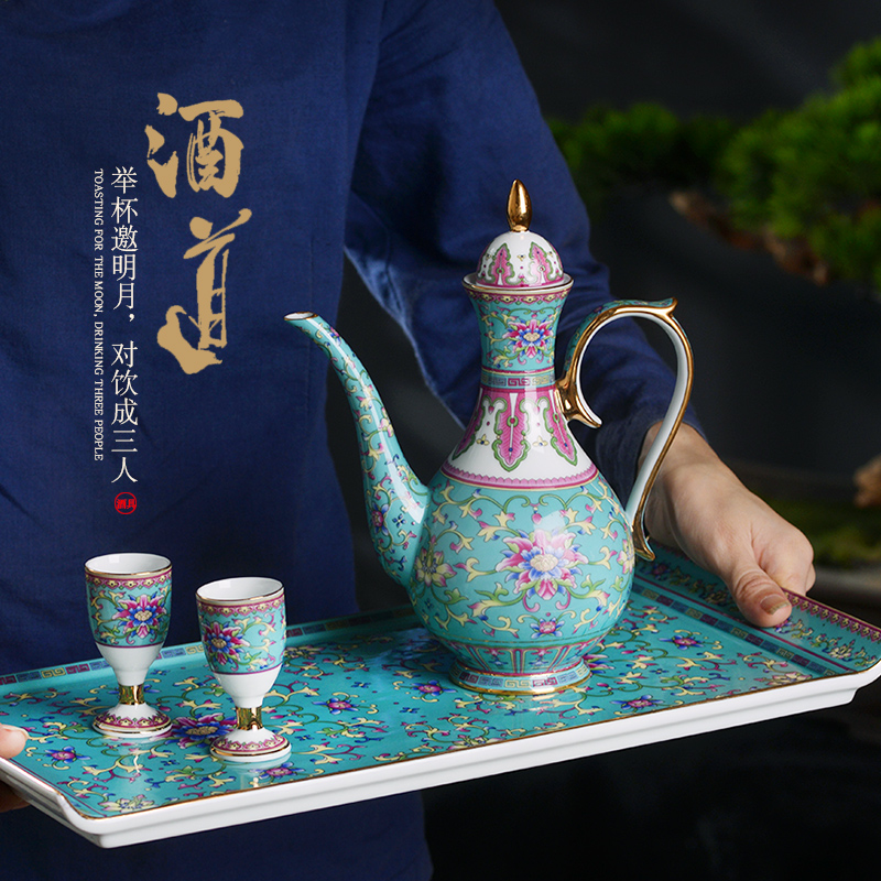 Wine glass set Jingdezhen enamel color antique wine utensils set household Chinese wine jug dispenser goblet