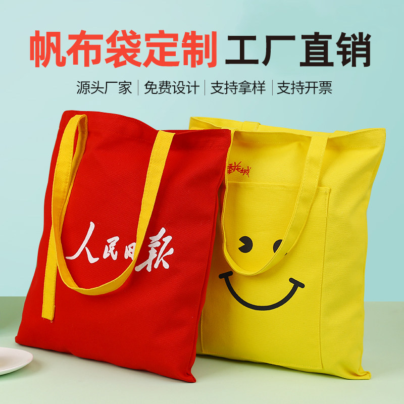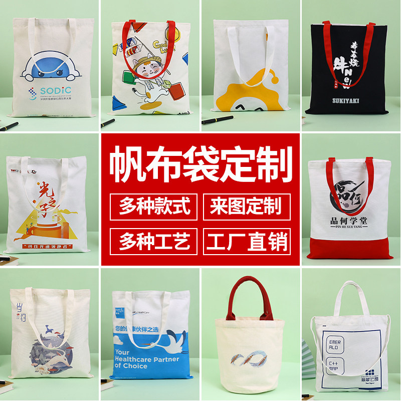 Canvas bag custom logo print pattern shopping bag custom made eco-friendly cotton advertising single shoulder tote bag customization