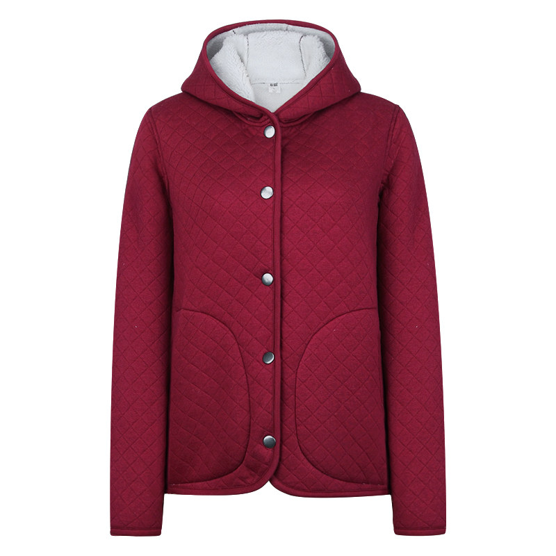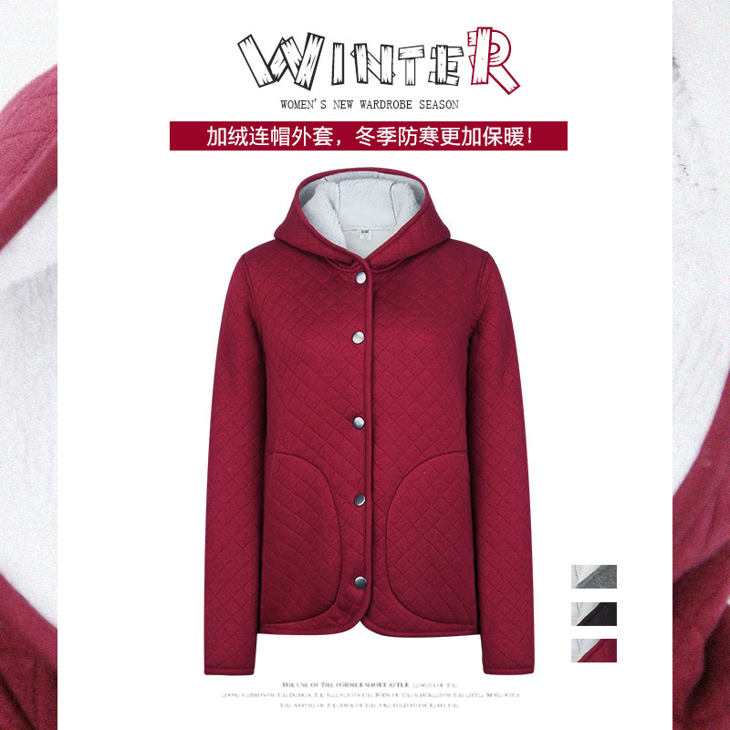 Cotton coat women's autumn and winter imitation lamb velvet pure cotton plus velvet thickened warm cotton-padded jacket rhombus grid hoodie cotton clothing