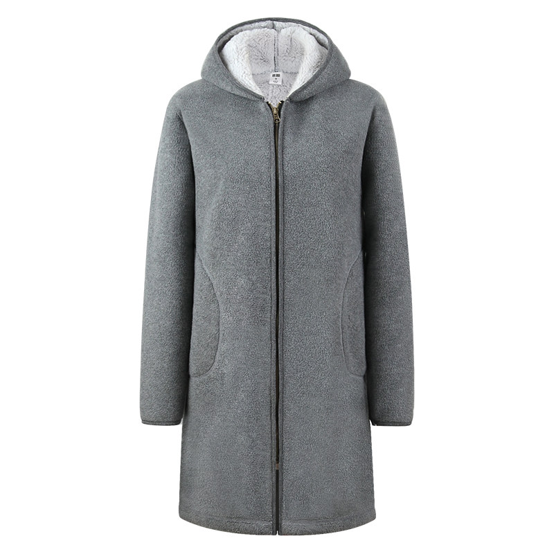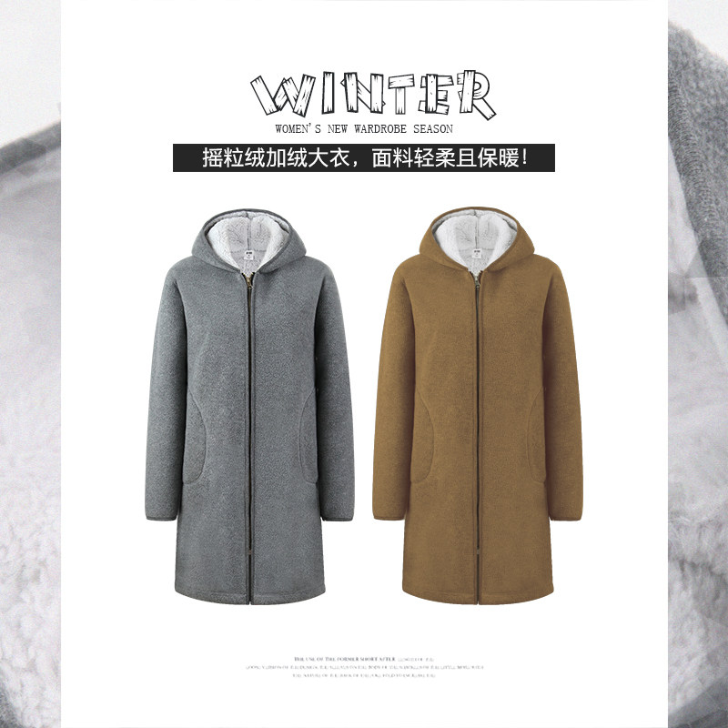 Polar fleece mid-length coat women's autumn and winter loose hooded cardigan fleece fleece imitation lamb velvet warm fleece coat