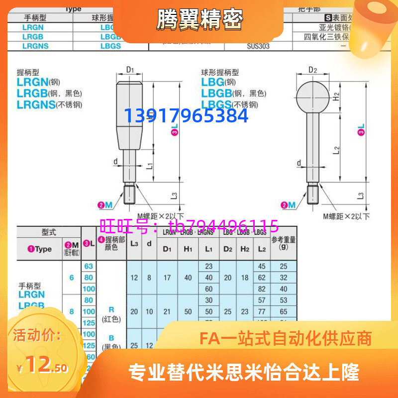Misumi Standard Ball Grip Type Fixed Handle LBG6 LBG8 LBG10 LBG12