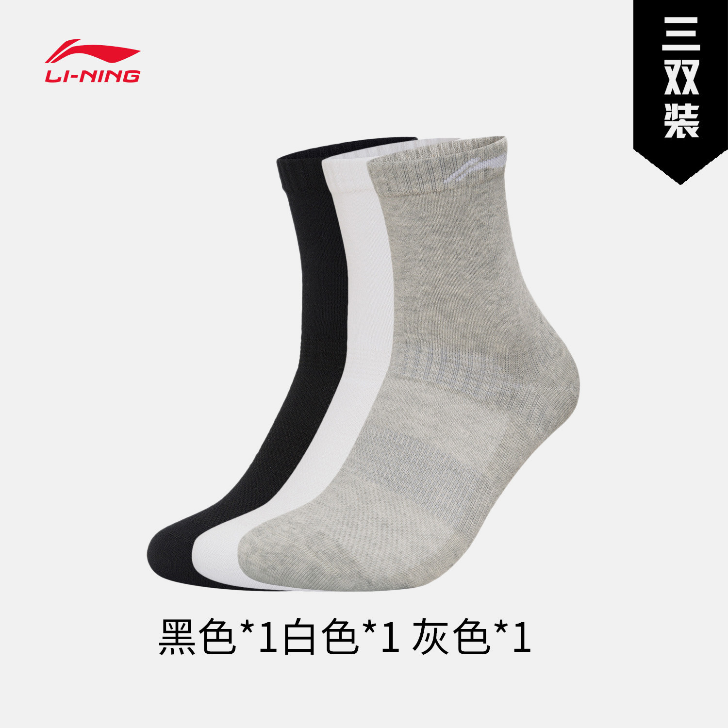 Li Ning Middle Silo Socks Men's Training Series Long Socks Three Pairs Shipping Stockings (Special Products No Withdrawal Exchange)