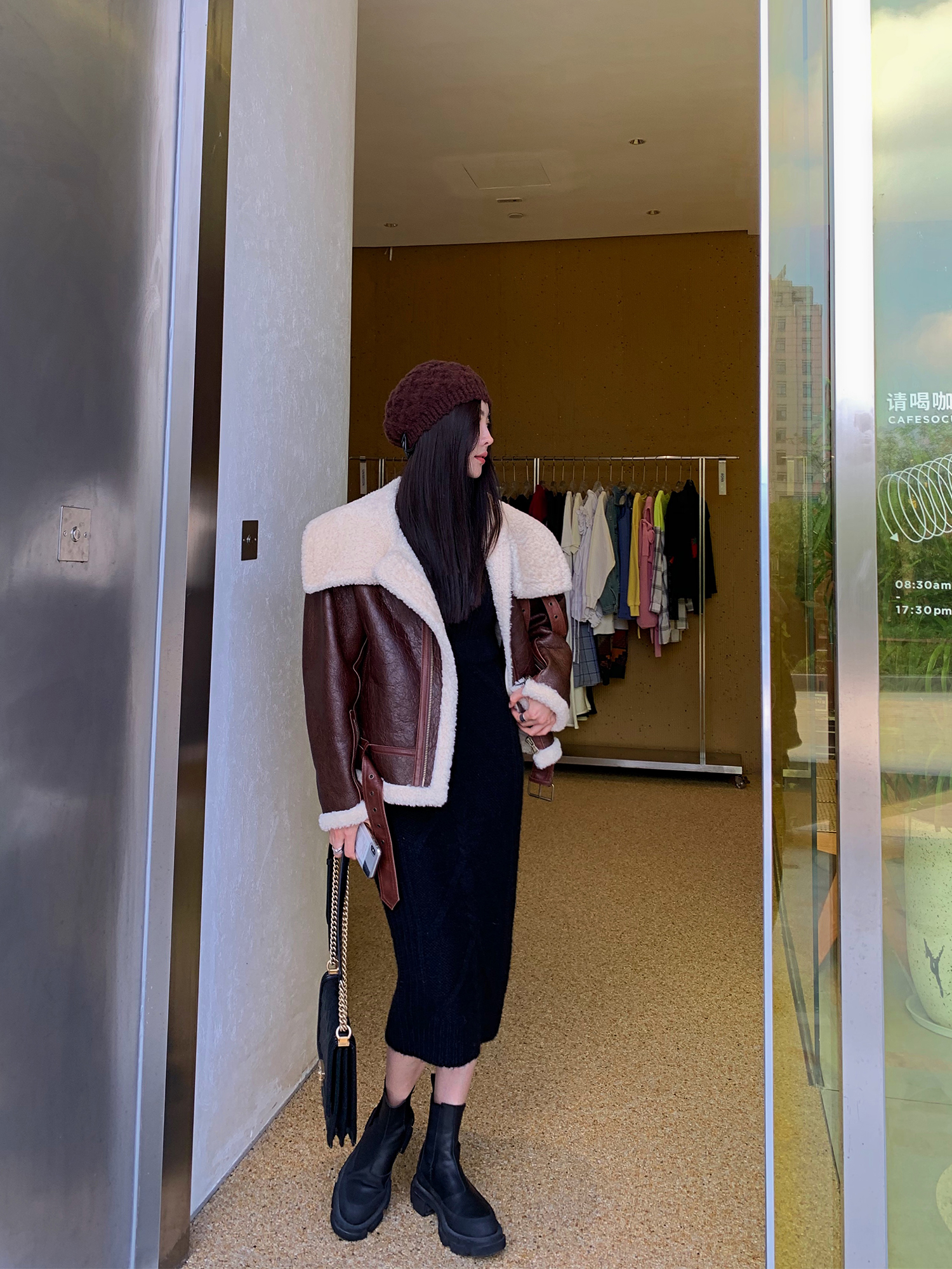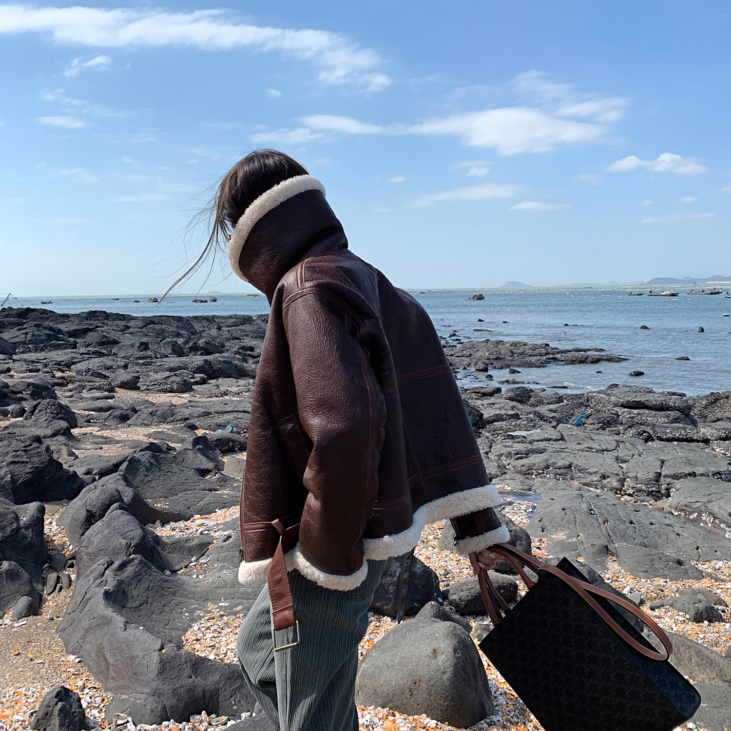 Fu Zhien Long Island Iced Tea Black Label Merino Fur Coat Lamb Wool Young Fur Coat