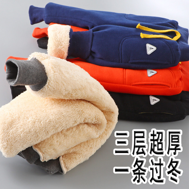 Baby boy baby cotton pants winter plus fleece sweatpants 1-3 years old children warm pants big pp2 girls thick fleece pants