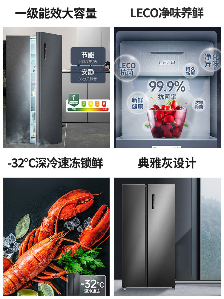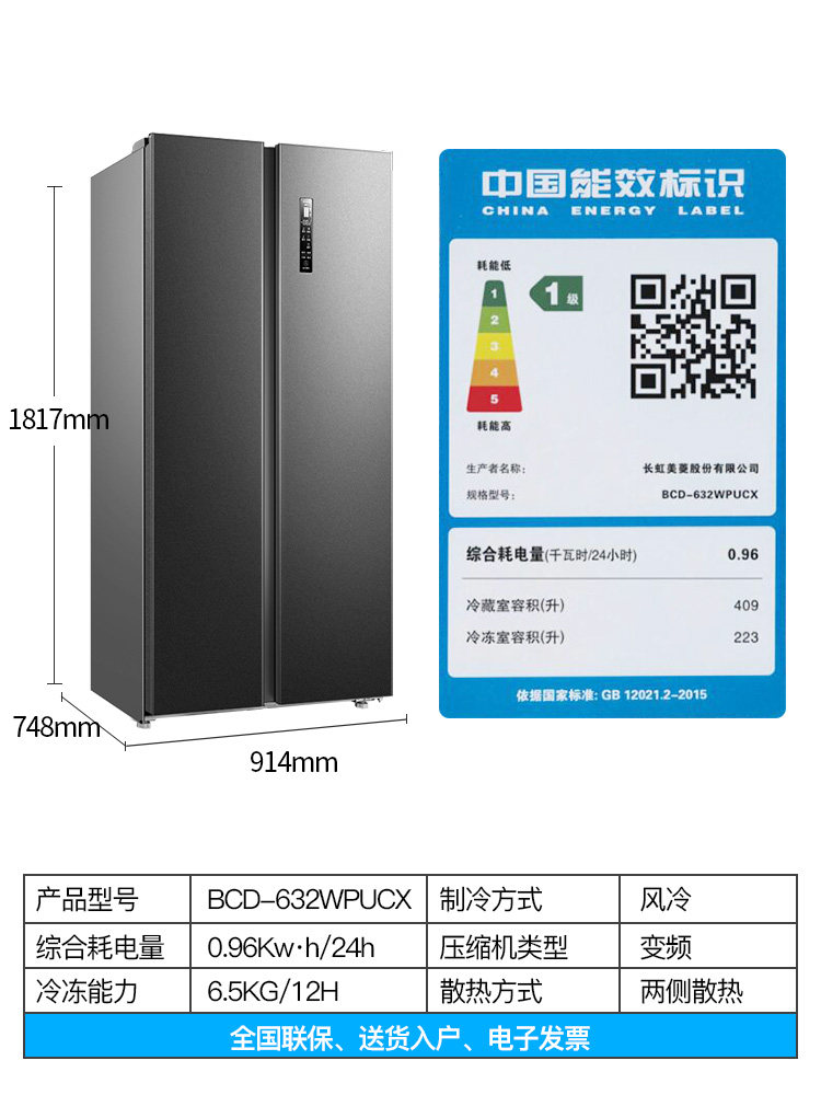 Meiling 632L first-class frequency conversion large capacity double door to door frost-free household energy-saving refrigerator official flagship