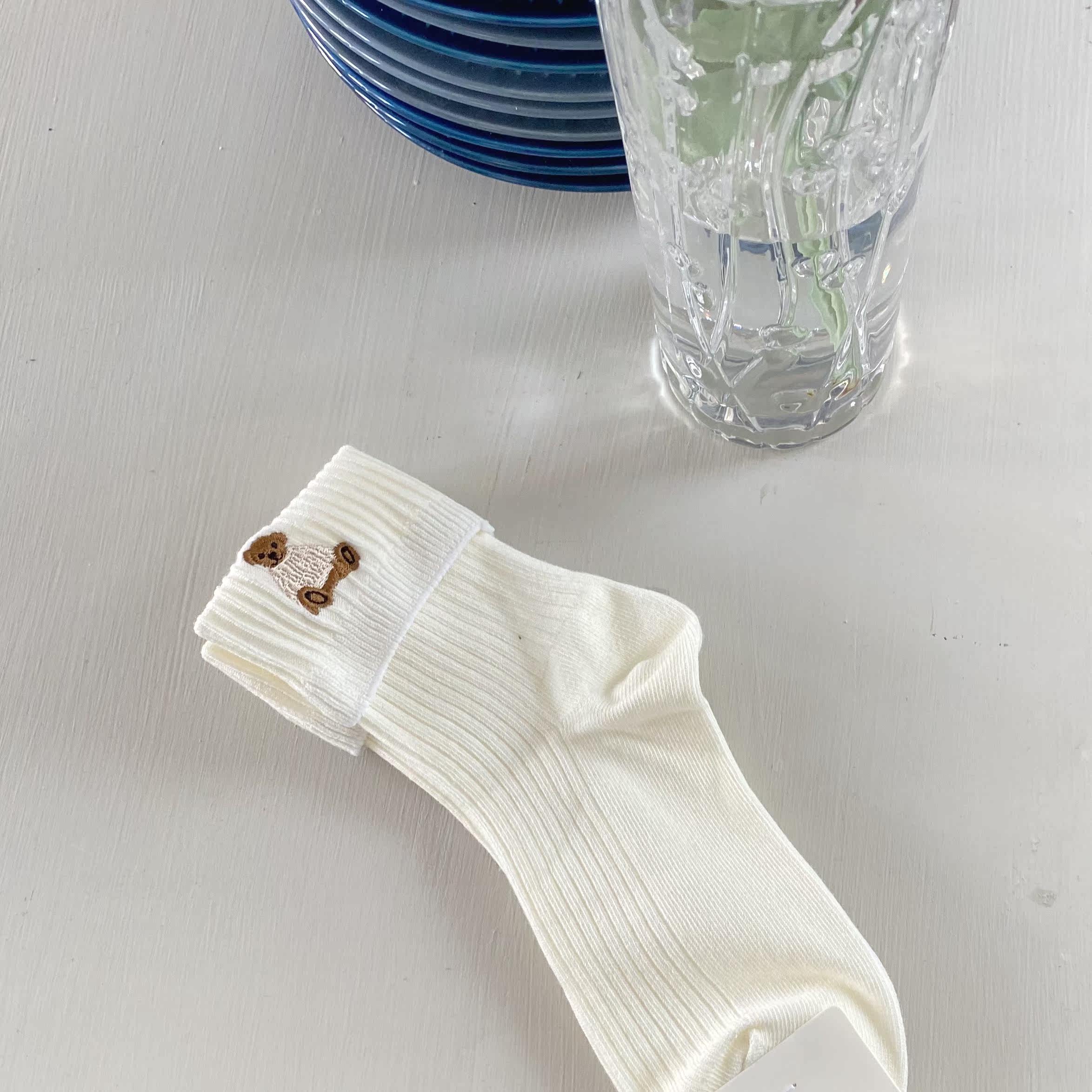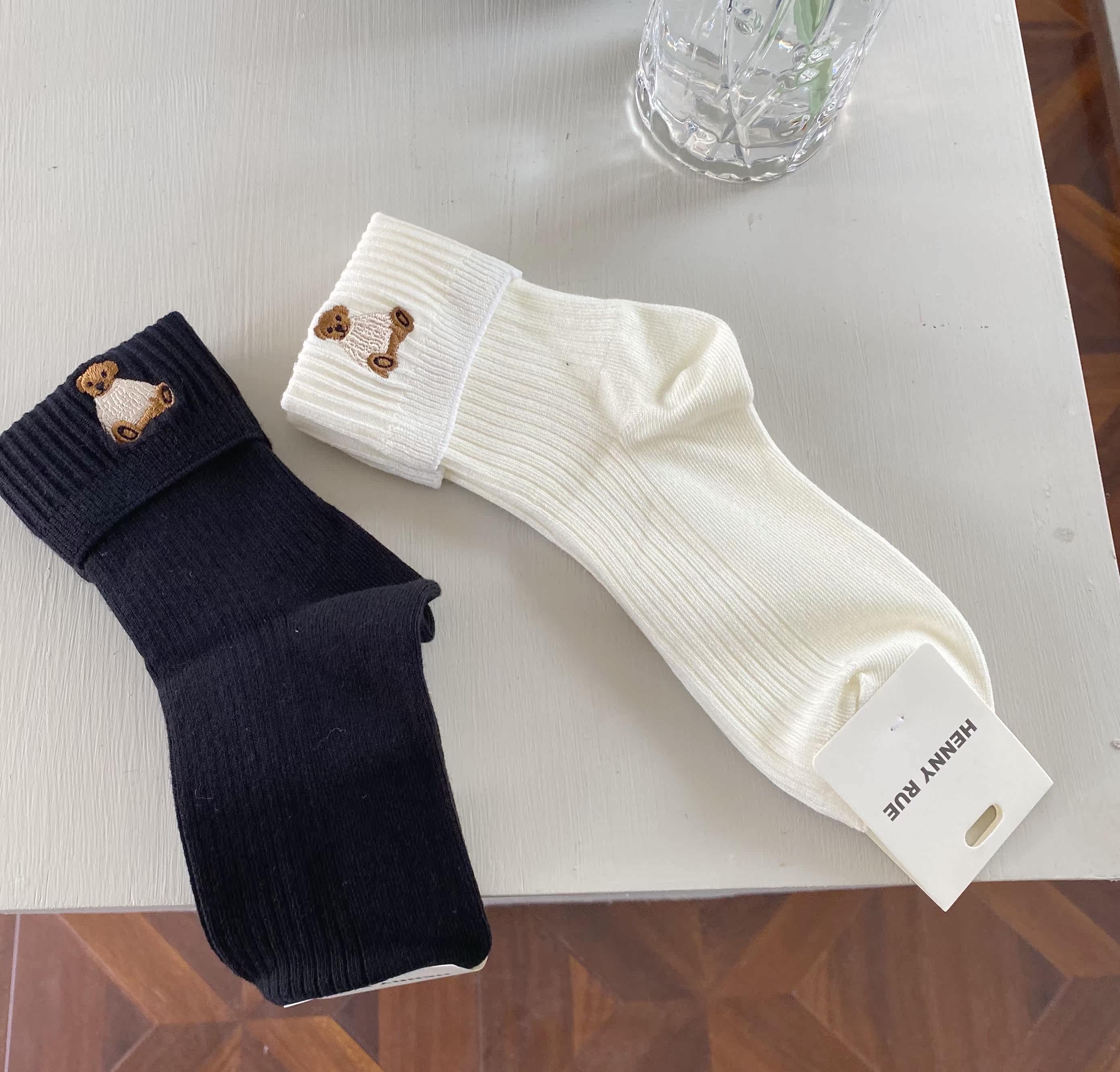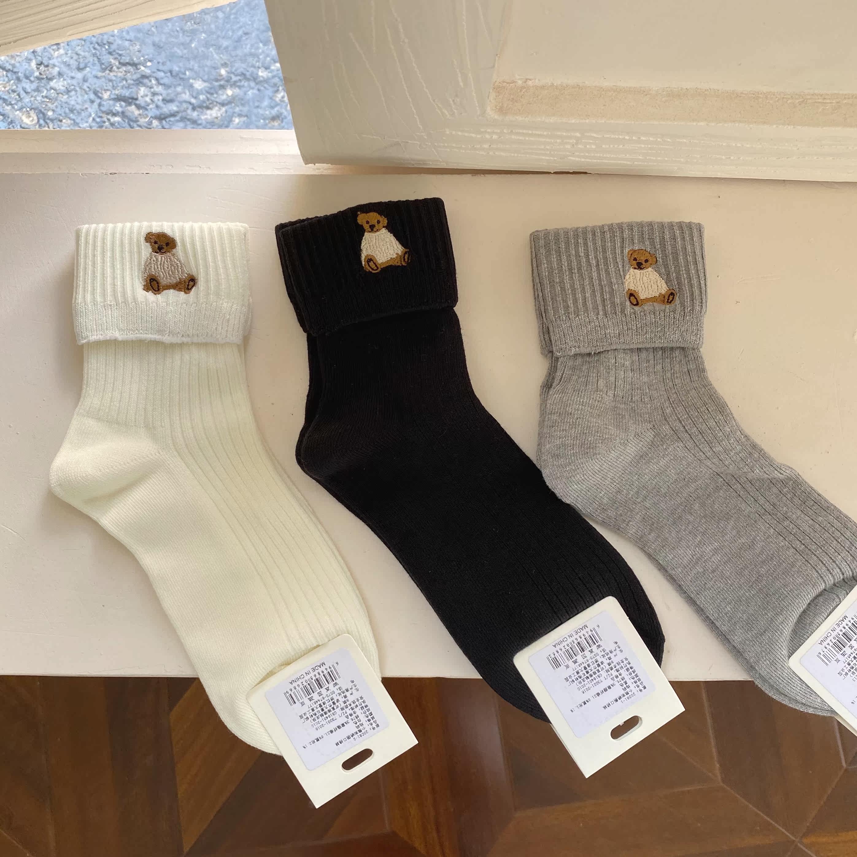 Bear in the sweater in the tube socks female soft cute girl black and white gray autumn and winter all-match sports socks student socks
