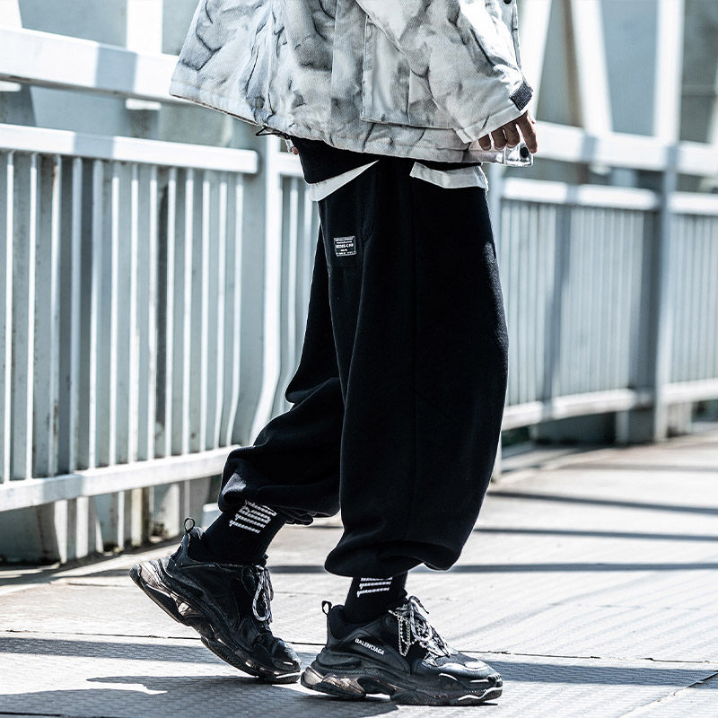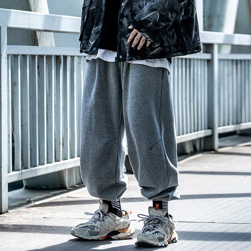National trend casual trousers Men's loose velvet thickened cigarette tube pants Wild trend autumn and winter sports pants drawstring pants