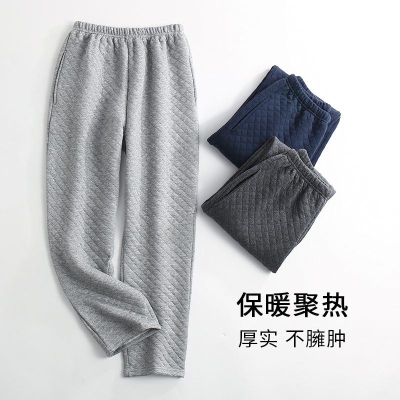 Men's Sleep Pants Autumn Winter Pure Cotton Thickened Garnter Warm Long Pants Spring Autumn Style Full Cotton Warm Pants Loose With Home Pants