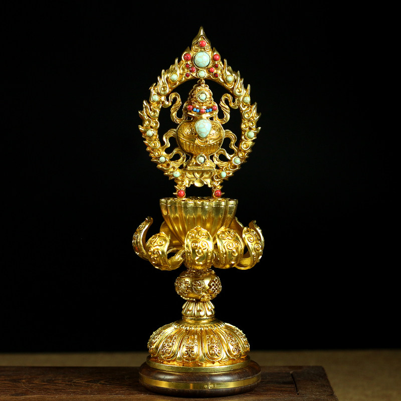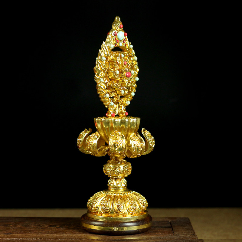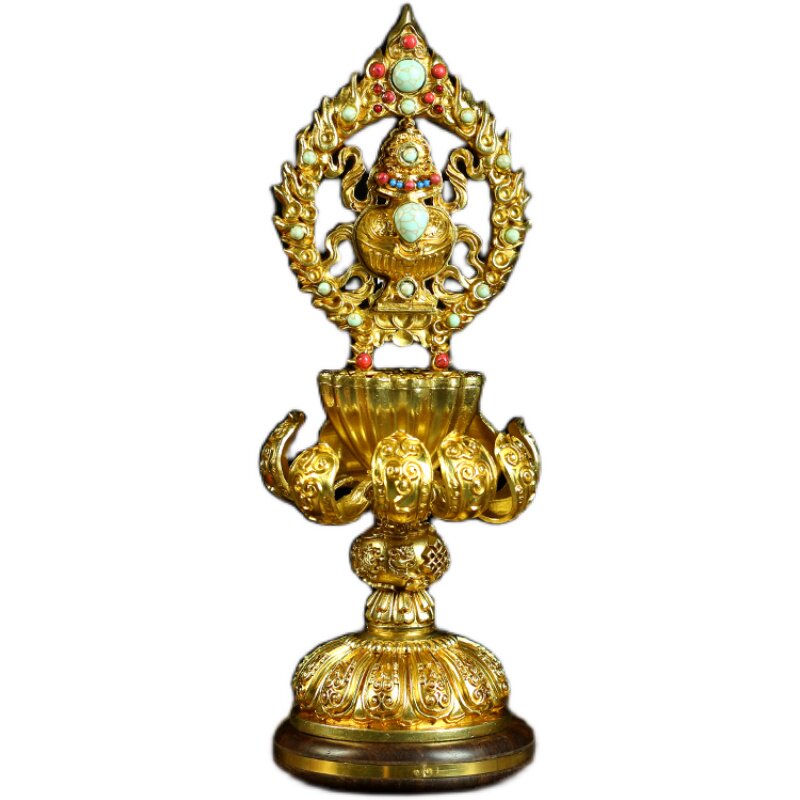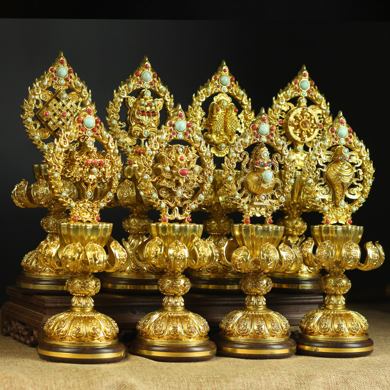 Tibetan Buddhism High-footed Buddhist High-footed Lotus Seiko Pure copper Mascot Eight Auspicious Pendulum with a total collection of gold