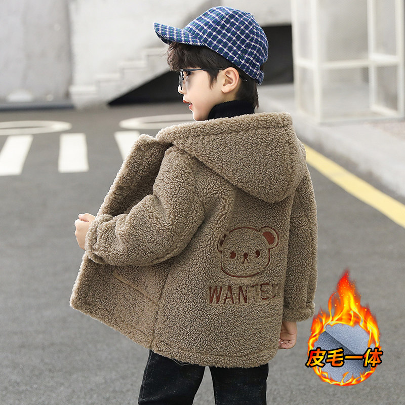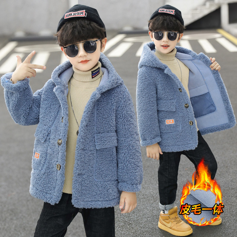 Boys' winter coat 2022 autumn and winter children's lamb velvet foreign style thick boy handsome wool sweater for big children