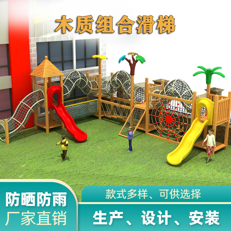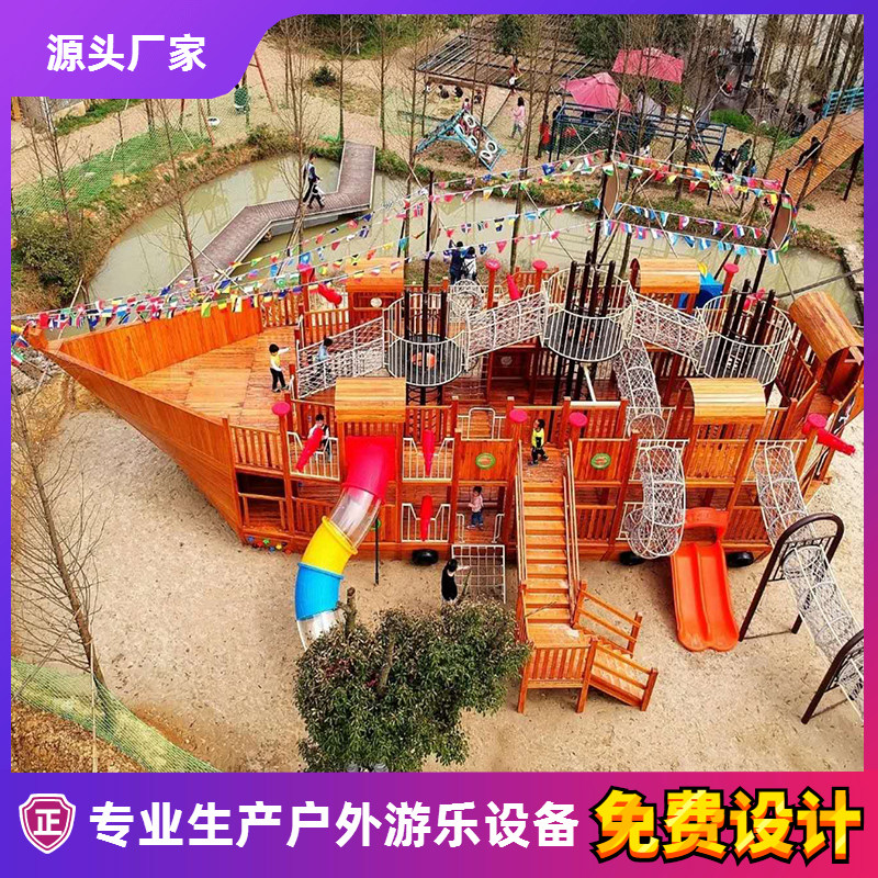 Outdoor Large Children Playground Equipment Sea Theft Boat Climbing Net Rack Kindergarten Wood Slide Slide Drilling network Facilities