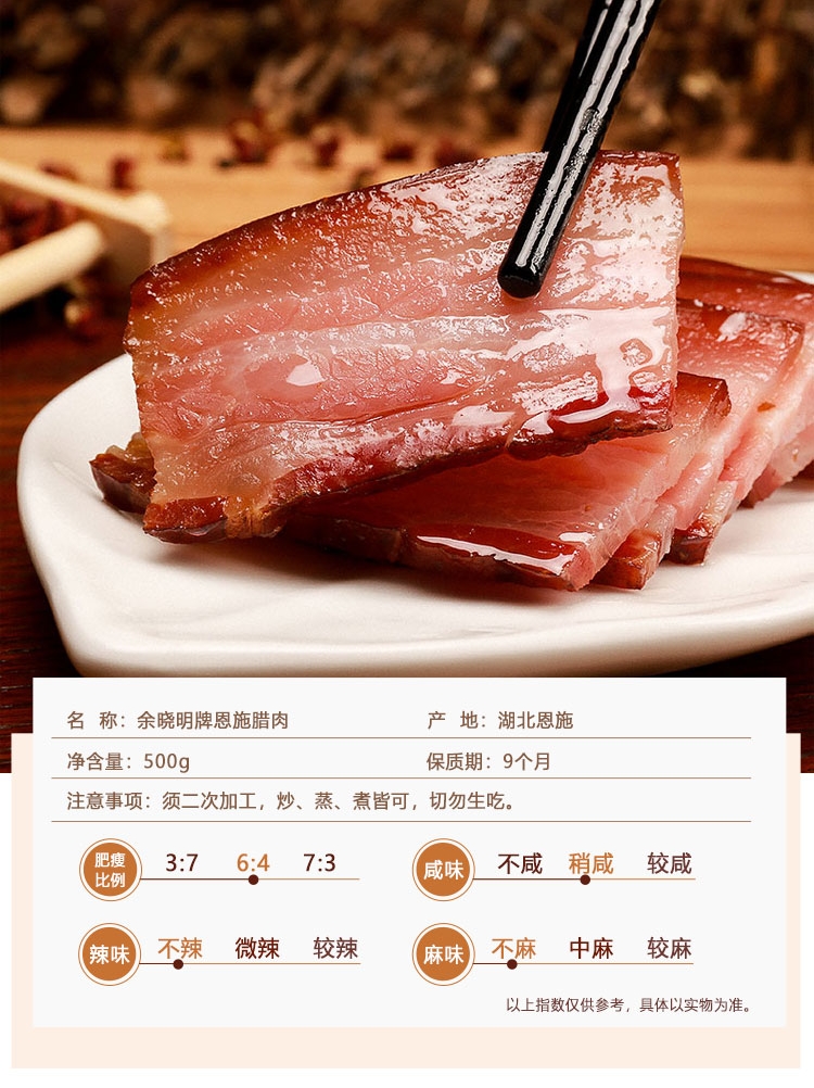 Yu Xiaoming Enshi five-flower old bacon sausage Hubei specialty farm homemade smoked air-dried 500g 5 catties Sichuan