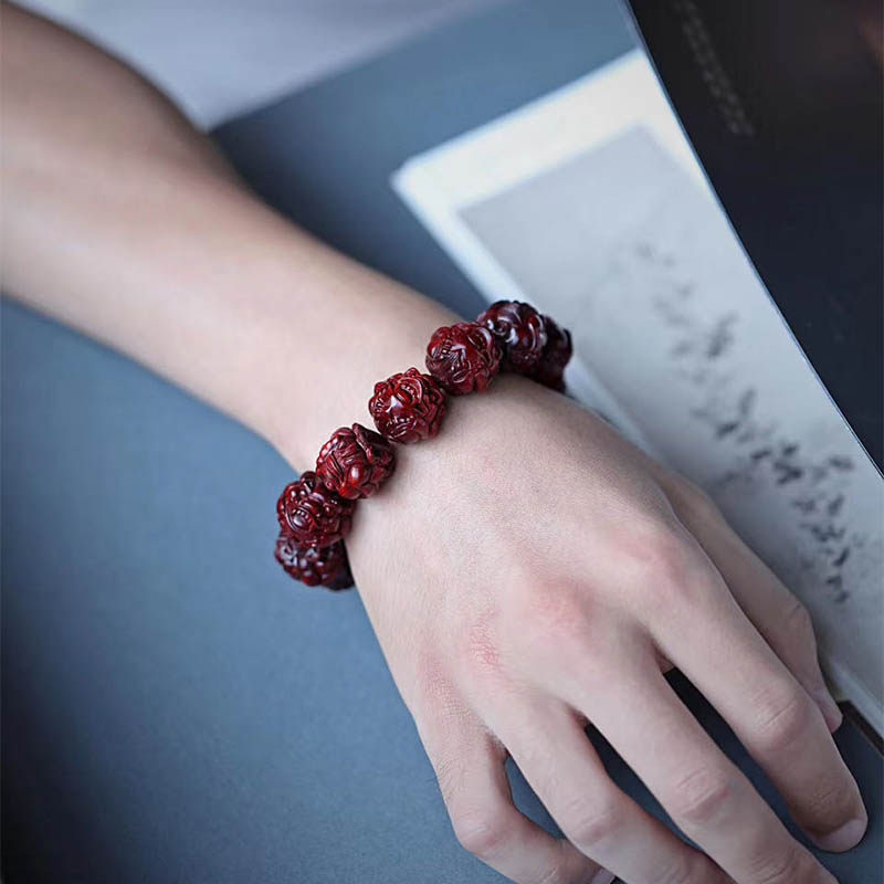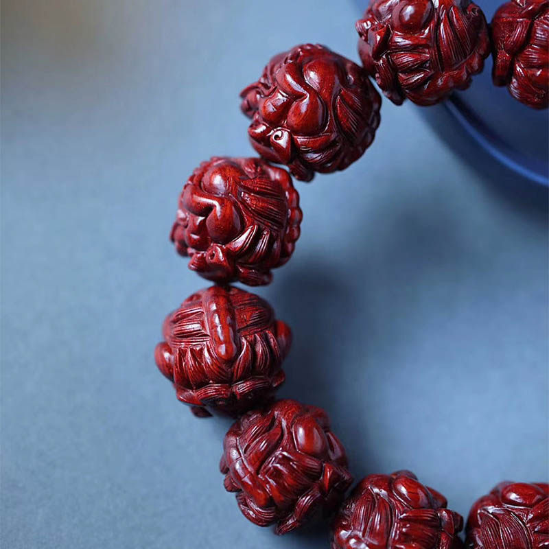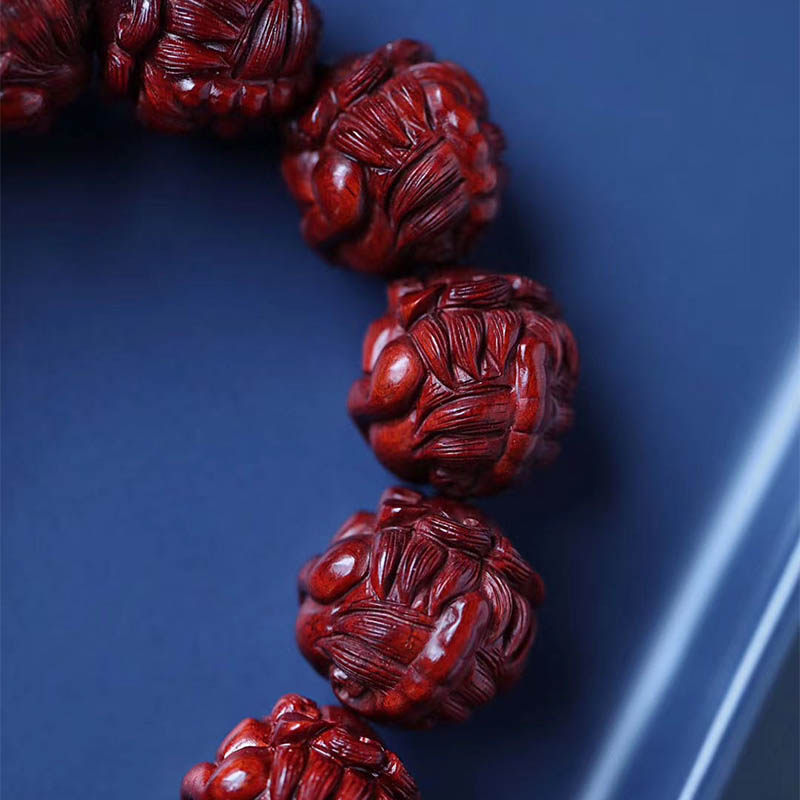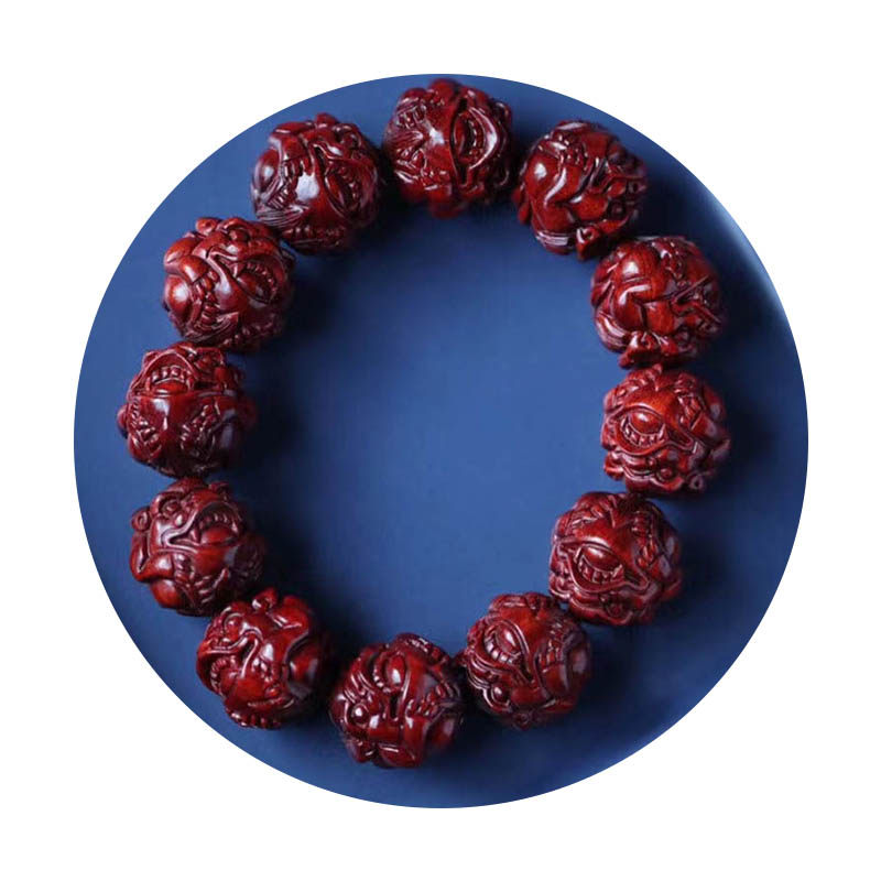 Pixiu lobular red sandalwood pure hand-carved 20mm Wenwan Buddha beads bracelet finely carved
