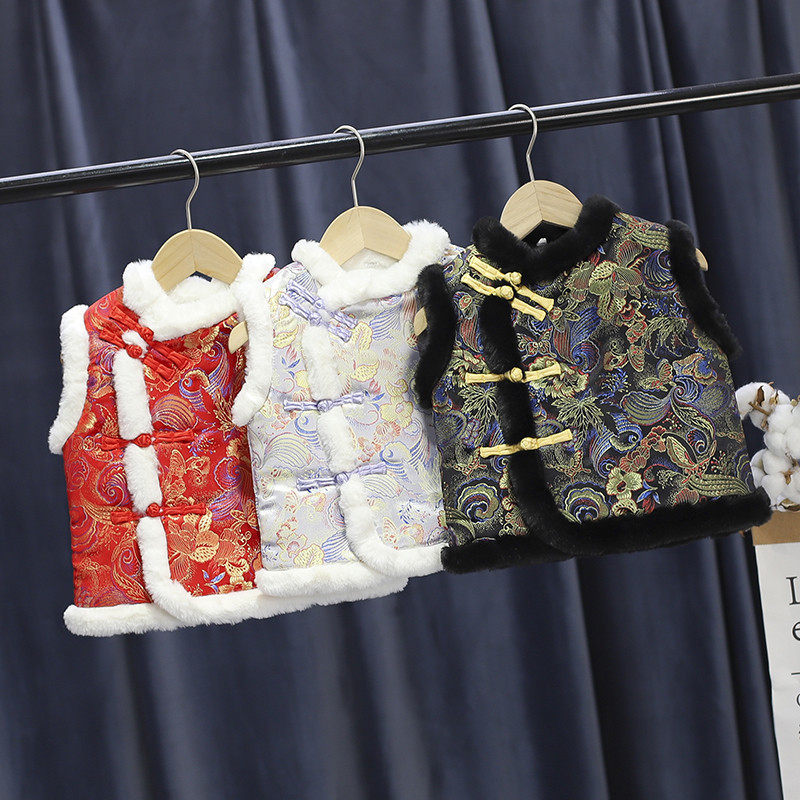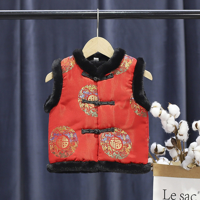 Red plus velvet placket Colorful Vest