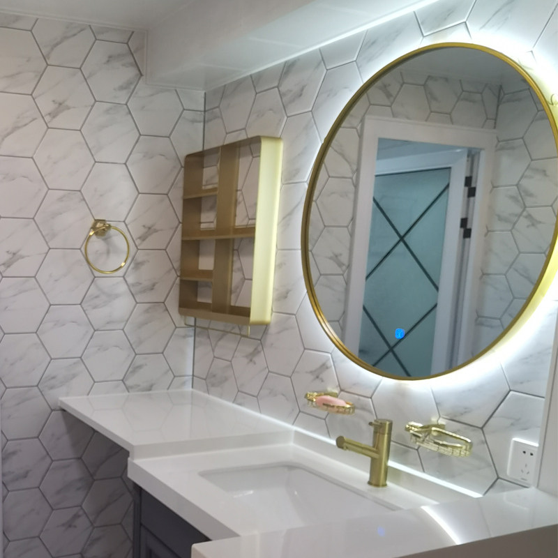 Light luxury Nordic style bathroom round mirror toilet bathroom mirror net red mirror wall-mounted toilet curved vanity mirror
